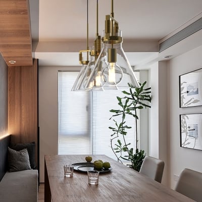 PENY Large Modern Style Glass Pendant Kitchen Island with Clear Oversized Triangular Glass Shade